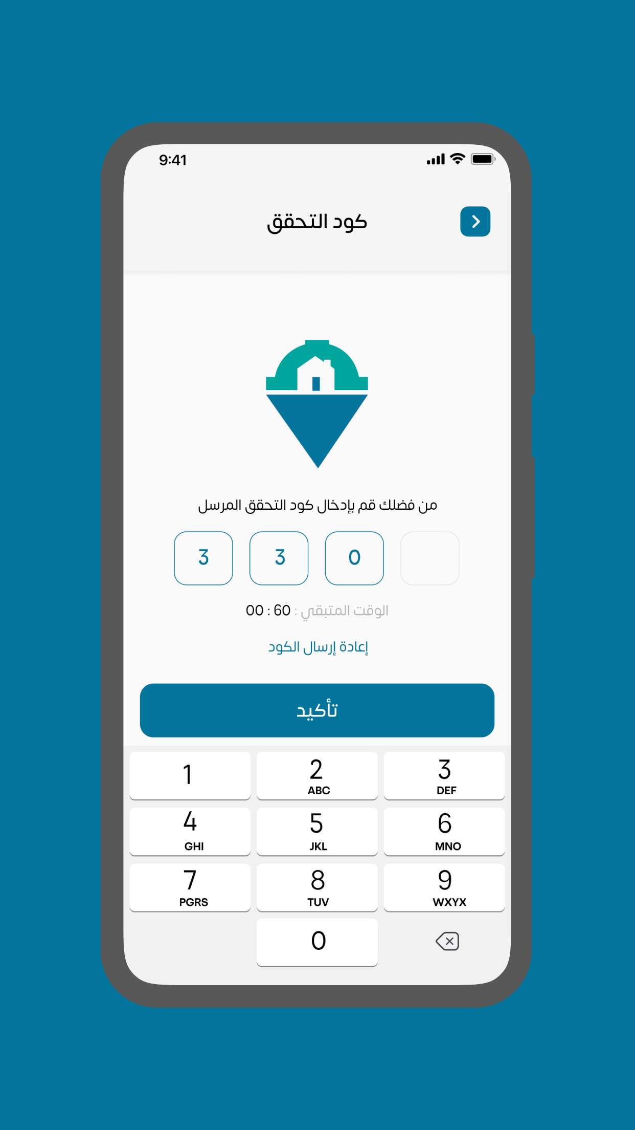 من فضلك قم بادخال كود التحقق المرسل